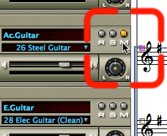 - Click the M (Mute) button to the left of the staff you want to mute.