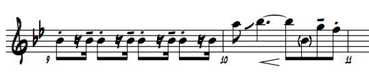 Sometimes, I write the parts with a dotted eighth and 16th rather than the typical 2 eighth notes. Notice in the Bubba’s Revenge example how there are 16ths in the first bar and eighth notes in the last. This communicates a slight variation of the rhythm to the player. This is from the guitar part in bars 9 and 10. Check out the YouTube recording, below.