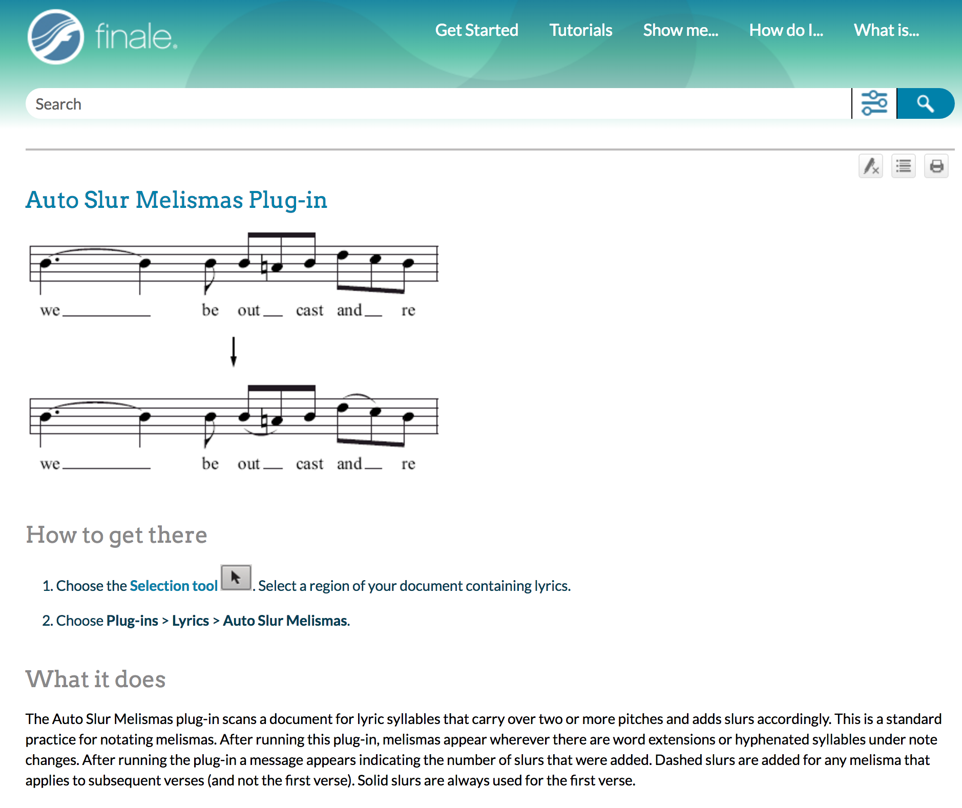 - Choose Plug-ins > Lyrics > Auto Slur Melismas