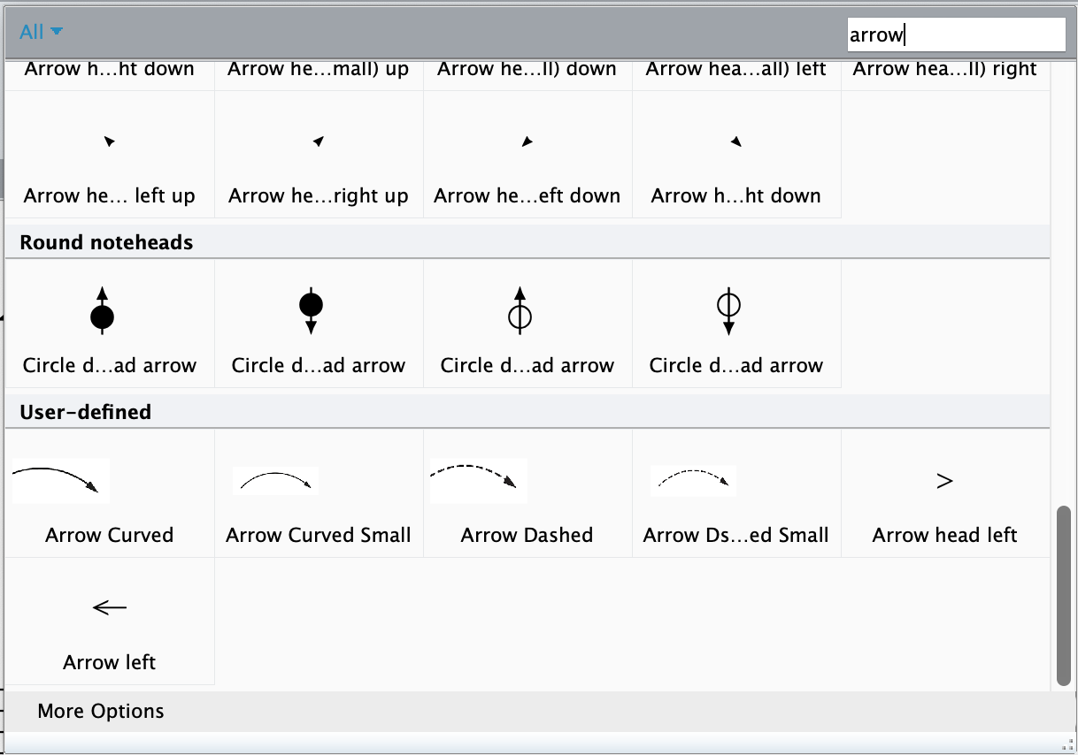 - Press Z to open the Symbols menu (or go to Notations> Symbols) and search for Arrow.